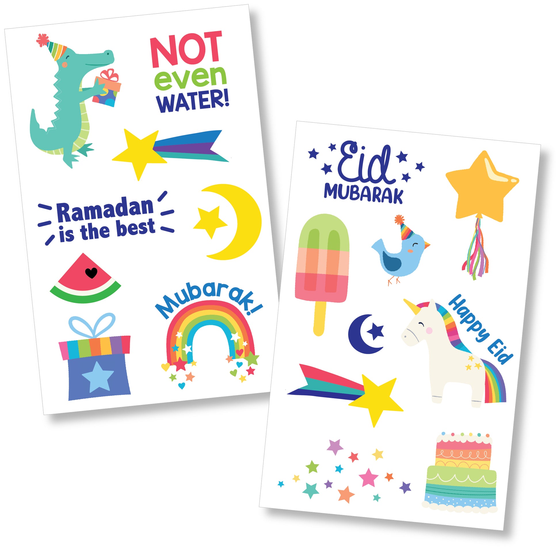 Colorful and festive temporary tattoos for Ramadan and Eid! Tattoos last 2-3 days.  These tattoos are easy to apply and come with printed instructions on the back and cut lines.  For best results, be sure to follow the instructions carefully.
